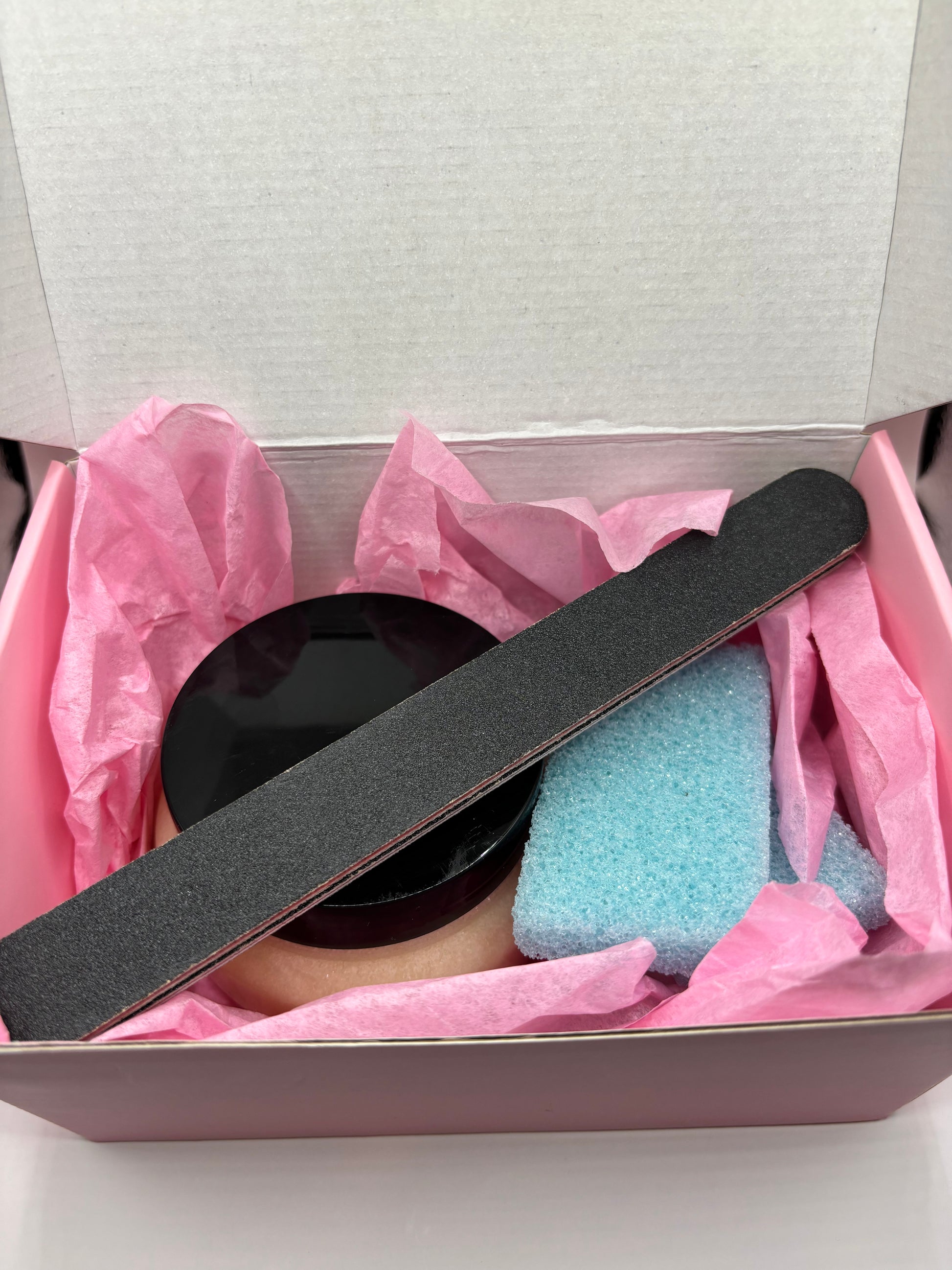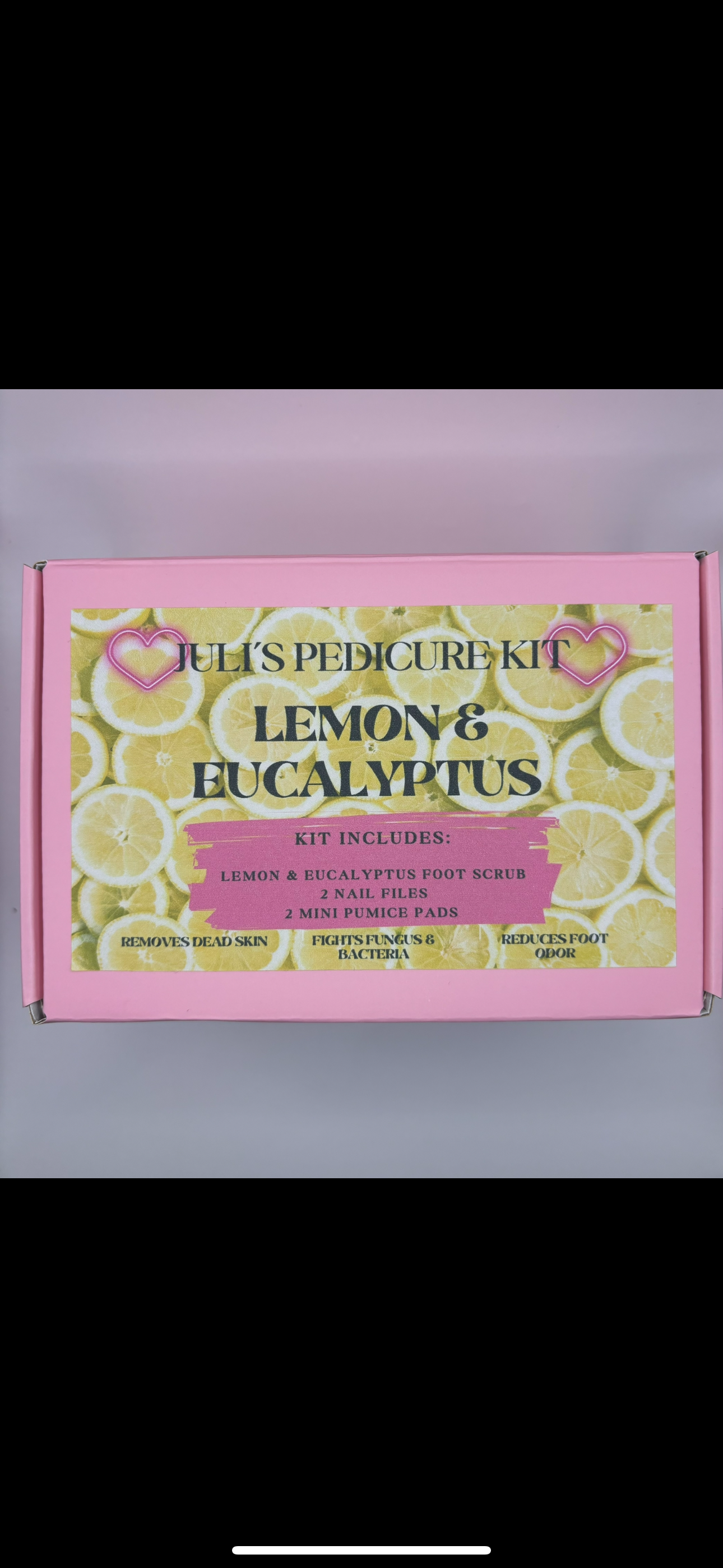 Experience a refreshing at-home spa treatment with our Lemon & Eucalyptus Pedicure Kit. This invigorating set features a zesty foot scrub infused with the bright, uplifting scent of lemon and the soothing, revitalizing qualities of eucalyptus. The scrub exfoliates and nourishes tired feet, leaving them feeling soft and refreshed. Included pumice pads gently smooth rough spots, while the nail files help shape your nails to perfection.
