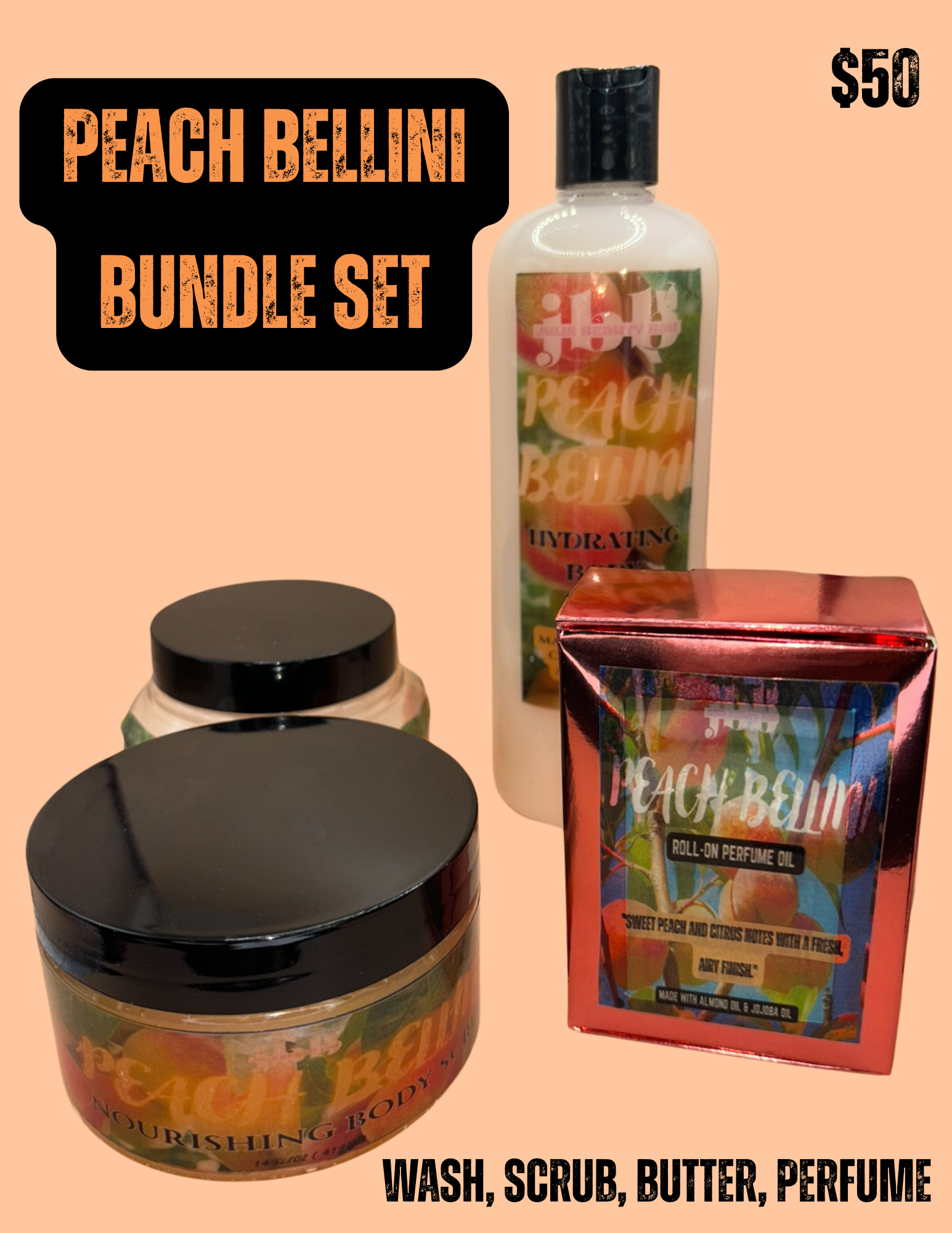 Treat yourself to a 4-step body care ritual with our Peach Bellini Bundle, featuring a Body Wash, Scrub, Butter, and Roll-On Perfume — designed to be used in order for best results: cleanse, exfoliate, hydrate, and finish with a fragrant touch.